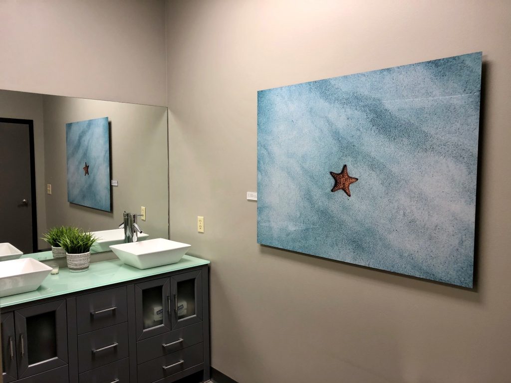Although we love the traditional look of art printed on paper and canvas, nothing beats the sleek and clean look of metal prints—especially to accent high-traffic areas like hospital corridors or airport concourses.