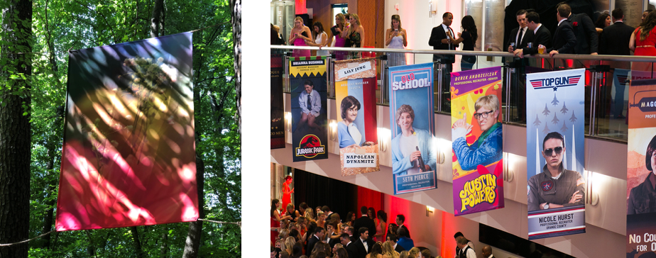 With the ability to print fabric up to ten feet wide, Colorchrome can produce large-scale graphics to fit virtually any space or display. Soft signage is an effective and highly-reusable solution for corporate banners, event displays, trade show signage, pool tables, flags, and more. From printed backlit banners displayed amongst the trees, to heavy knit trade show zip-ins, our tenured team has tackled it all.
