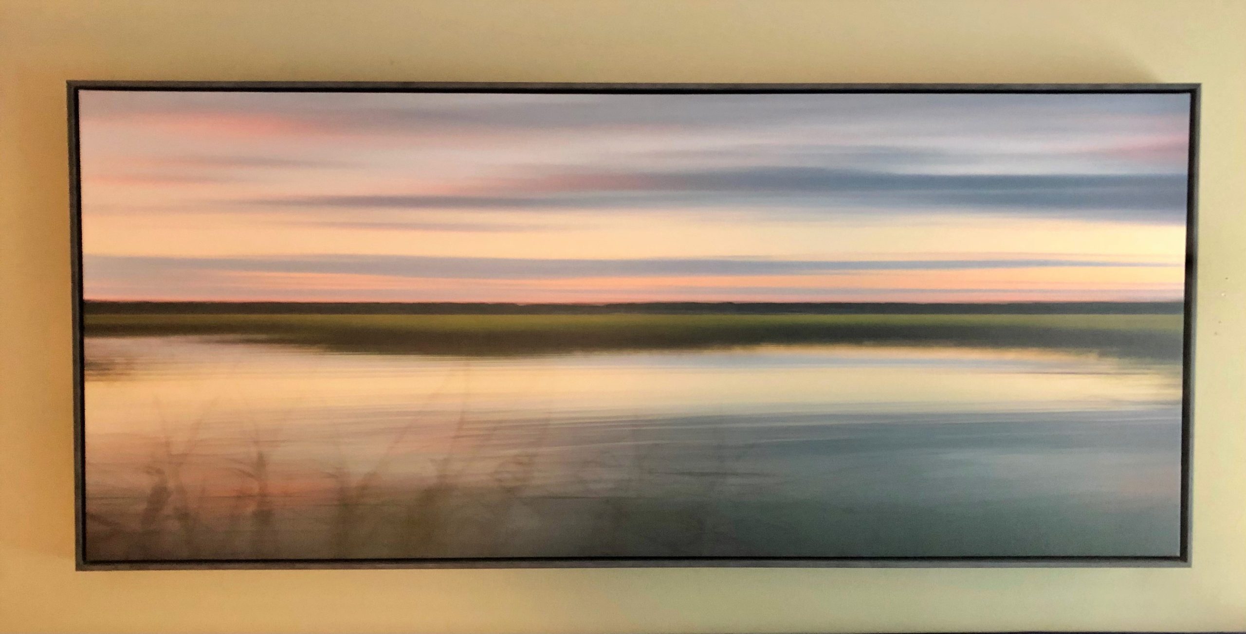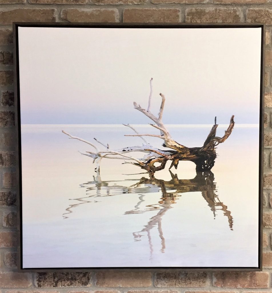 - You want to showcase the texture of your art or print. If your piece doesn’t need a protective covering such as glass or acrylic, a float frame is a great way to present and protect your piece without the obstruction of reflections from clear glass or acrylic glazing. Original paintings are a great example of this but we also love to float resin pours, face-mounted acrylic pieces, ChromaLuxe metal prints and direct prints on wood so you don’t lose any of the art’s texture.