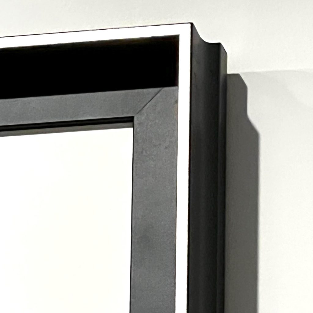 Float frames evolved in the mid-20th century out of a process called “stripping” where thin strips of wood were attached to the edges of stretched canvases to protect the sides and give them a more finished look. The current float frame is an L-shaped profile that allows your art to be supported from the back so there is space between the art and frame providing a floating effect.