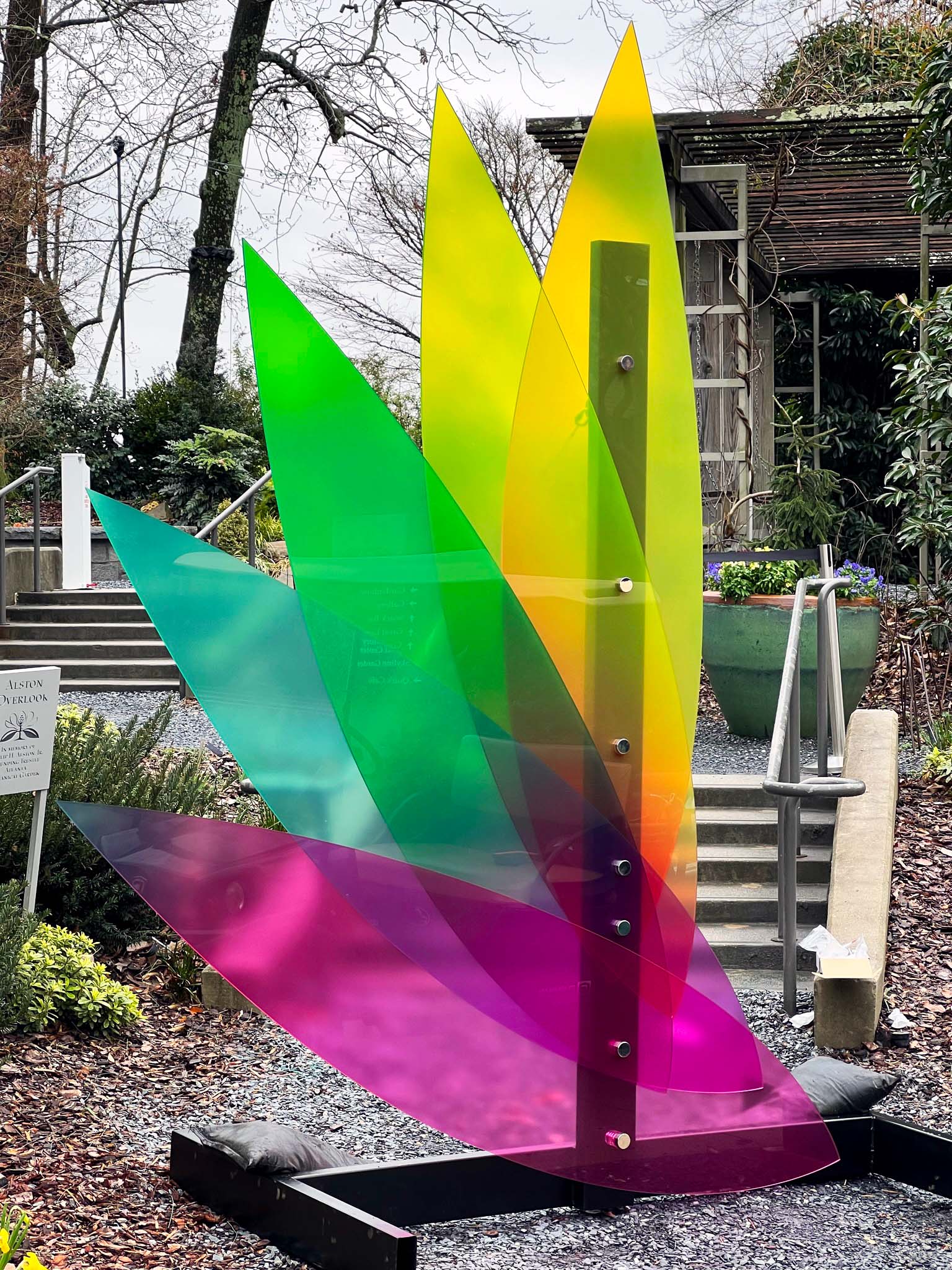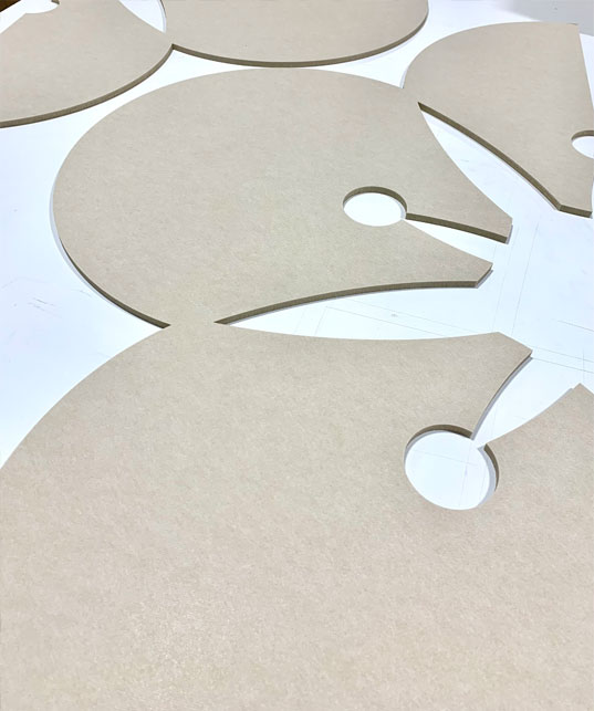 Acrylic, our most popular material to laser, is known for its eye-catching polished look when laser cut. The laser’s high heat smoothes curves and polishes edges, guaranteeing a stunning result. Client installations, shown to the right, display the diverse potential for acrylic projects thoughtfully combining shape and color.