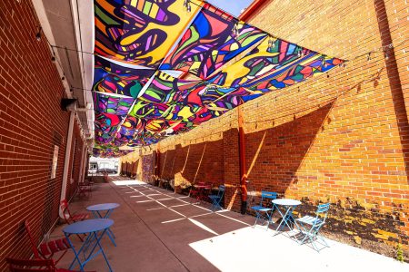 Colorchrome produced banners for the Alleywave 2025 nonprofit art project using dye-sublimation on fabric and stitched all materials.